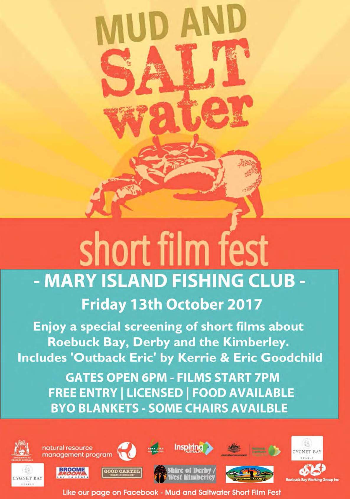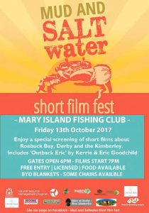 The Mud and Saltwater Short Film Fest is off to Derby. The popular short film from Derby, ‘Outback Eric’ will be shown at the Mary Island Fishing Club on October 13, 2017. Can’t wait to meet local filmmakers and inspire them to make short films for the 2018 Short Film Fest.